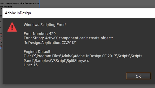 I am using indesign cc 2017. I am getting Error 429 in using split story script. I tried using this script in different documents but this issue is still the same. What should I do?