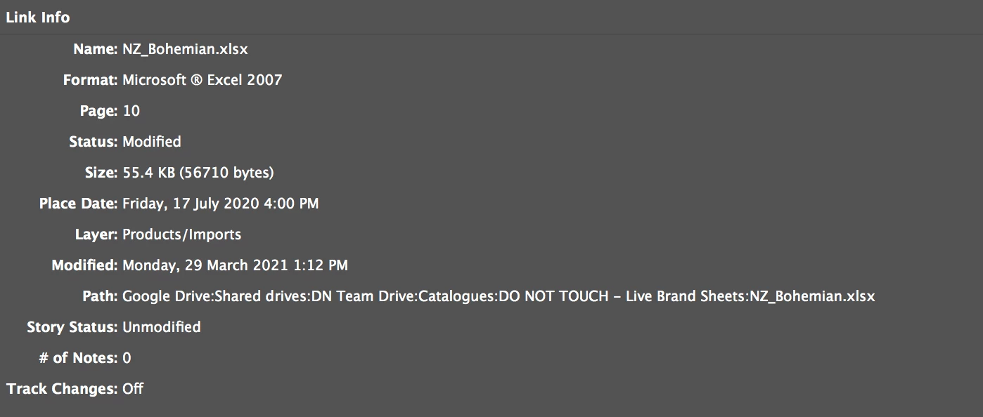 The file types being linked are .xlsx files. I've tried opening the file in two versions of InDesign - Adobe InDesign CC 2019 (14.0.3) and Adobe InDesign 2020 (15.1.3) I've tried closing and relaunching and resaving the spreadsheets and turning the computer itself off and on again and am stumped. Any help appreciated!