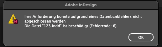 Ich habe ein Problem beim Öffnen meiner Indesign Datei. Ich habe ziemlich viel Arbeit da rein gesteckt. Jetzt lässt sie sich nicht mehr öffnen.