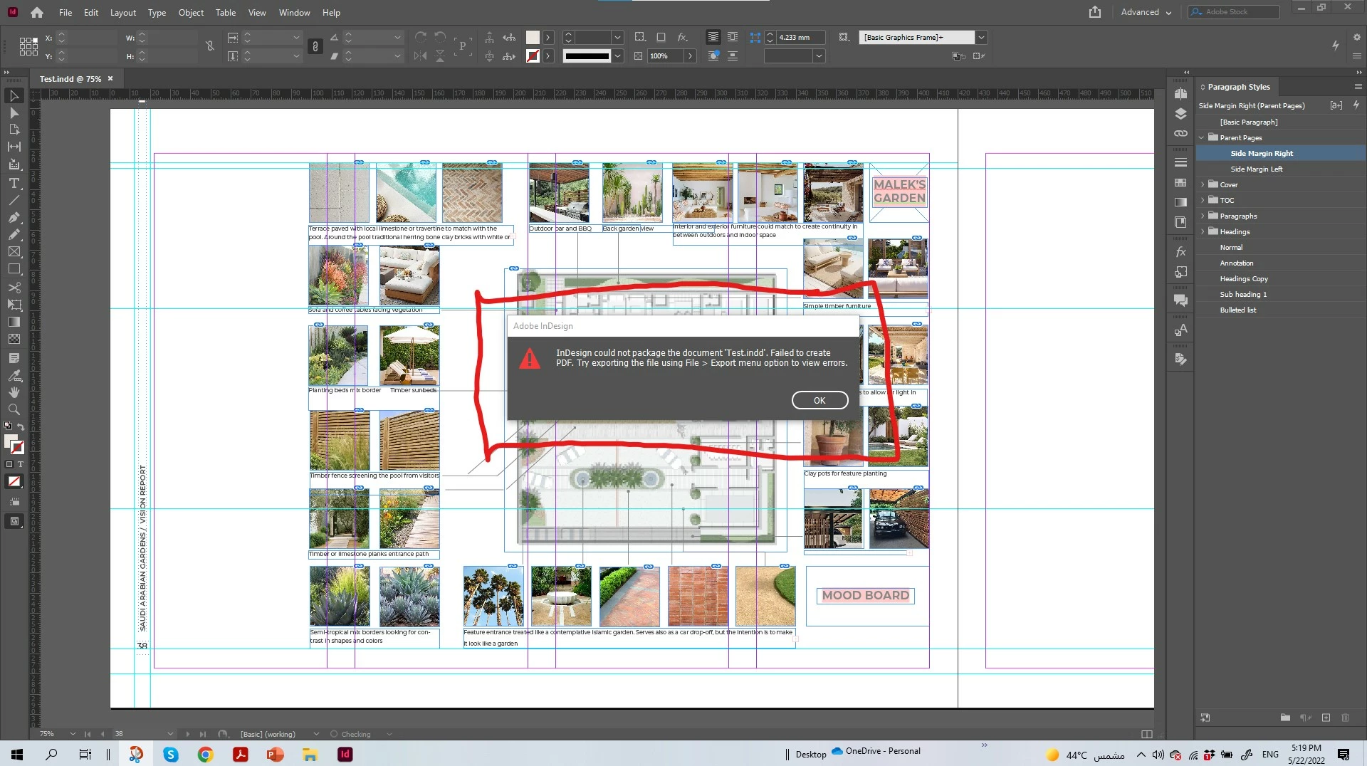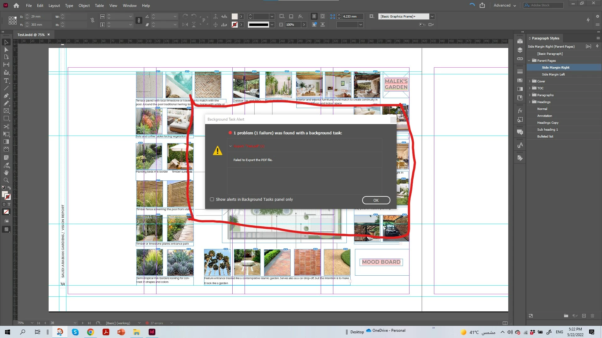 Export half the document. If it's fine do the other half. Continue with this until you find the page causing the problem. Then delete half the item on that page. If it's okay, do the other half until you find the item causing the erro.