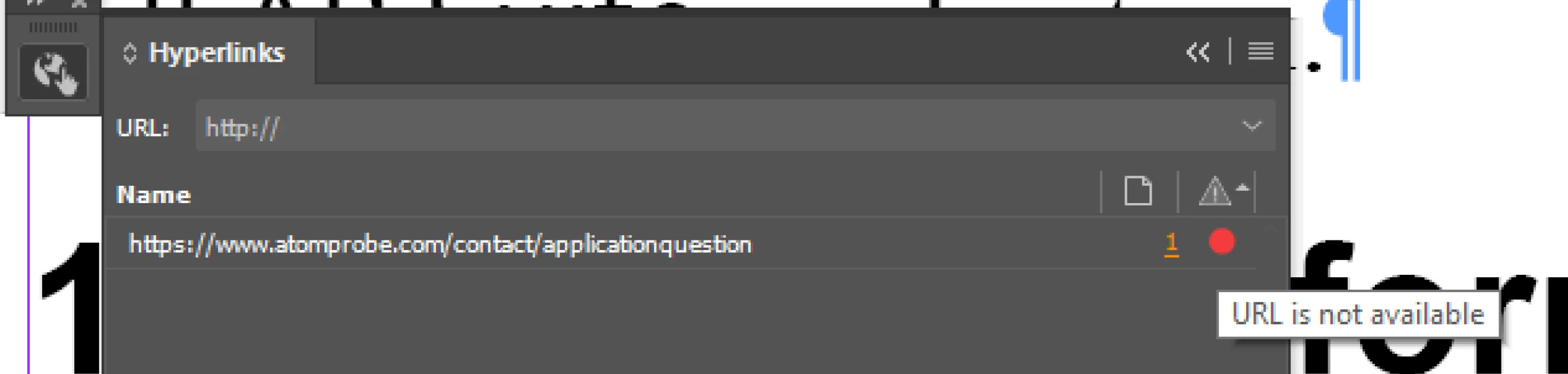 I've followed the tutorials and have read through the errors, but none of it has helped me. I've created a new hyperlink using the "New Hyperlink from URL" in the Hyperlinks panel and it creates the Hyperlink just fine. I get the red error and see that "URL is not available" when I hover over it. However, when I click on the link it still works and takes me to the appropriate site. Does anyone know why I still might be getting the error?