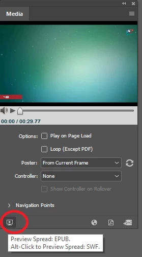 Window > Media > Place new video > press ALT and click preview for SWF preview.