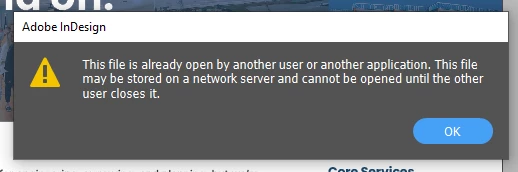 Hello. Our marketing department is using the latest version of InDesign (20.5) and encountering an error that says "This file is already open by another use or another application." For some, this occurs as soon as the file opens, and for others, it occurs after the file has been opened for a while. The files that are encountering this issue are not ones that someone else would have open at the same time. Instead, they are files saved to a local drive and files that are opened from an INDT in CC library. So far, we have tried rolling back to ID 20.4.2 but are still encountering the issue.