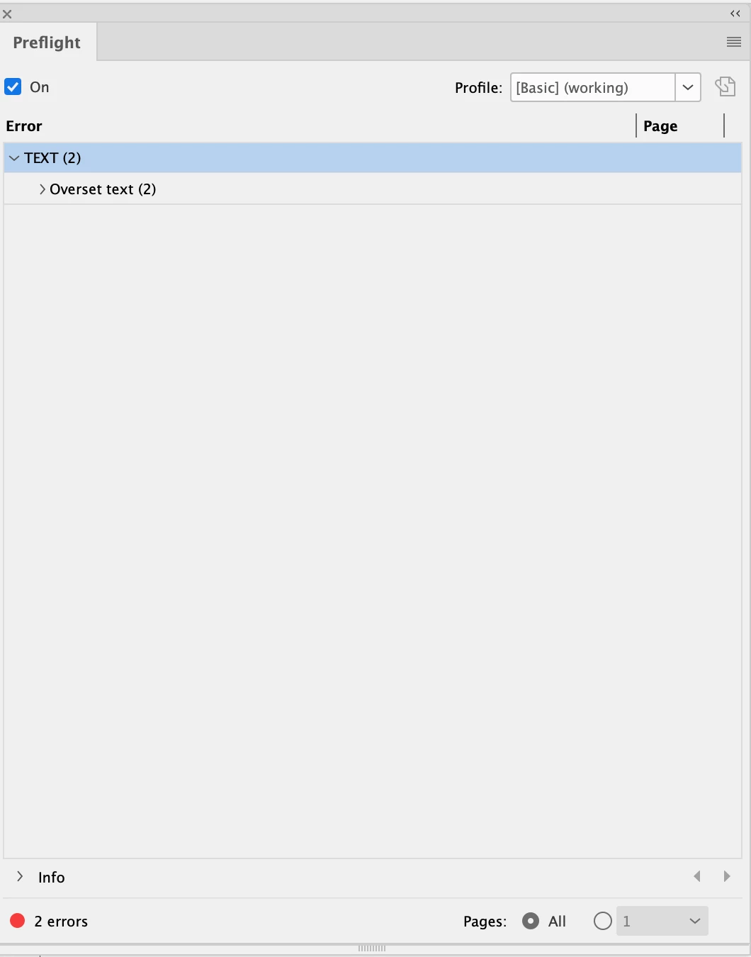 Apparently there are overflowing text boxes in my document, but there's no warning before exporting it to a PDF (which it does with no problem). The preflight panel does not include the suspect page. How do I find the page number where the problem is supposedly occuring?