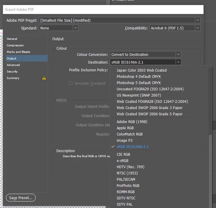 Export Adobe PDF CMYK Destination profiles disappearing (BUG?)
