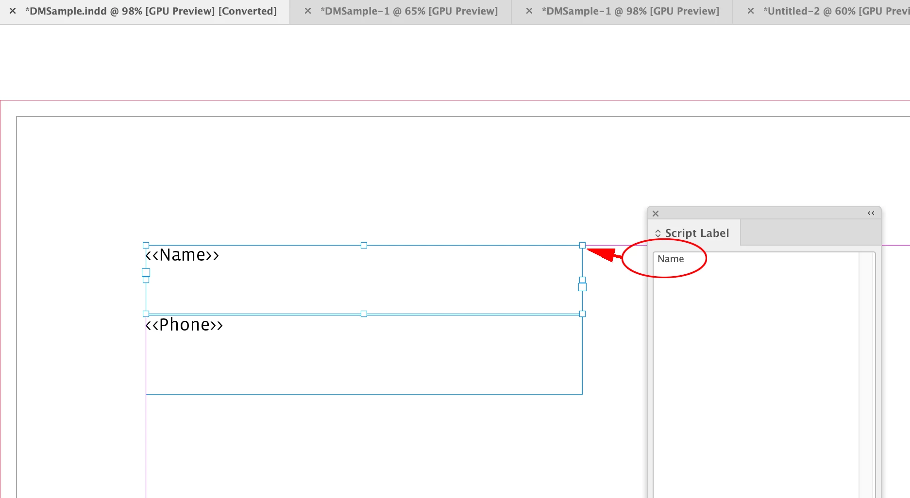 2. Create a text box and assign the Paragraph style "PDF_name"
