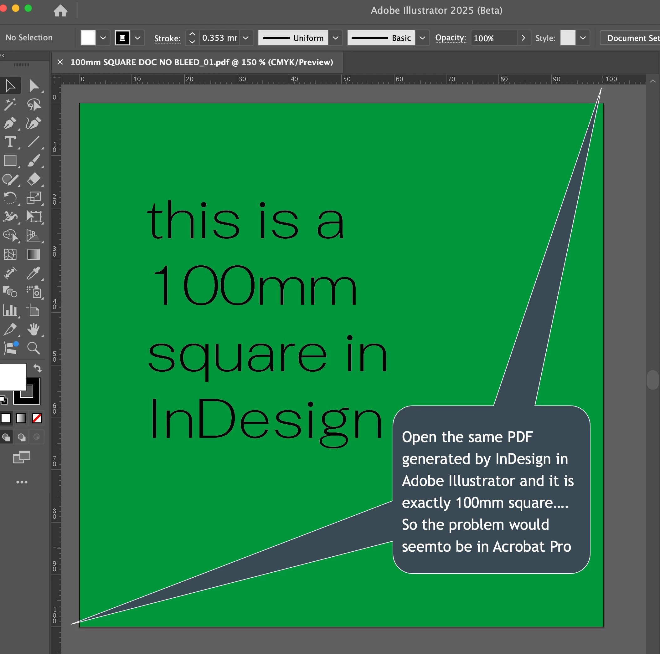 I have searched here and on the web, and found lots of suggestions about turning crop marks and bleed, etc on and off, but it's not that. (and lots of AI-generated nonsense that is talking about controlling file size of a PDF output, not dimensional size)