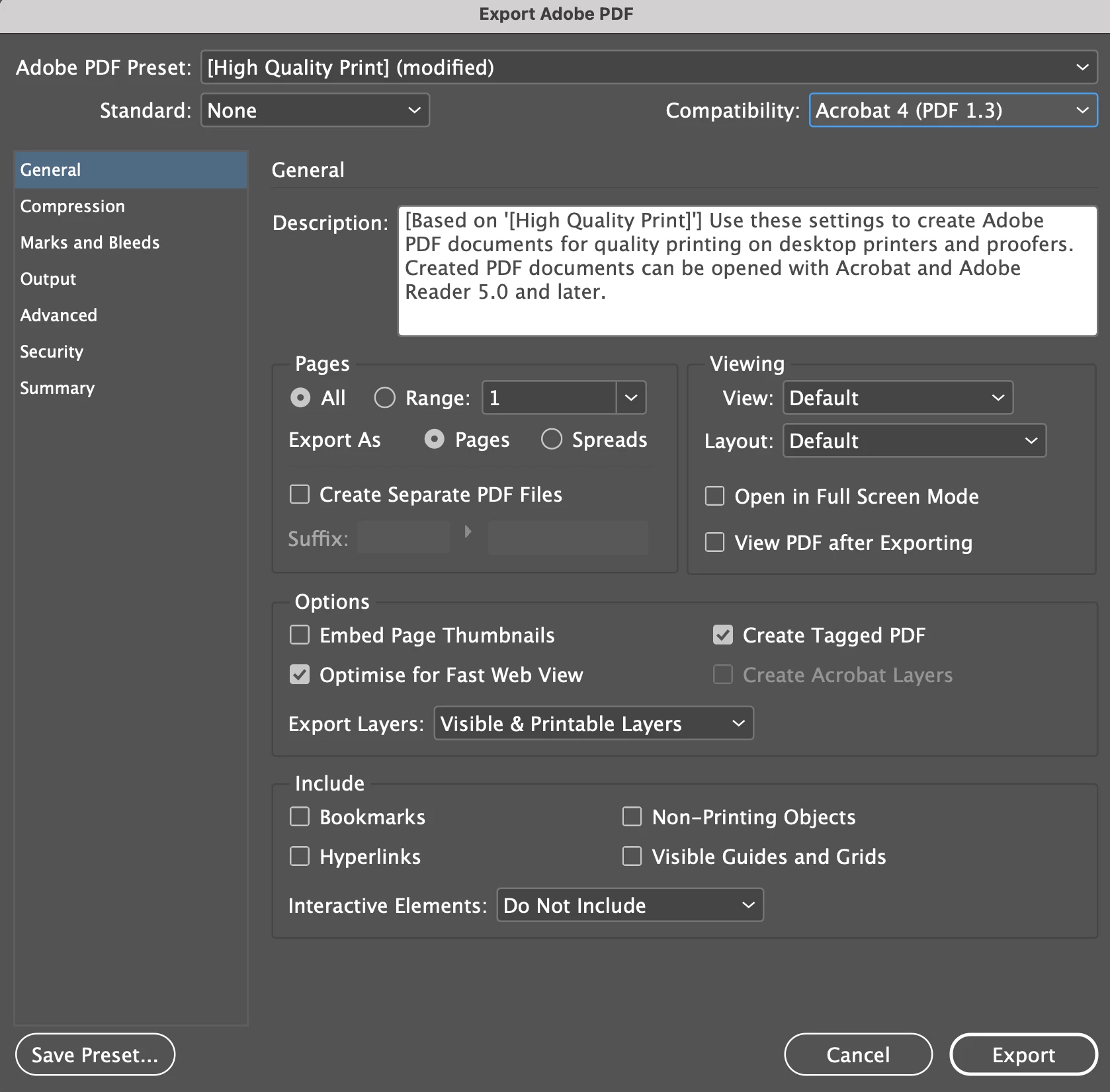Whichever way  I choose to export from InDesign, I can open up the PDF in a different publishing software, Affinity Publisher, and the layers are still there being easily edited.