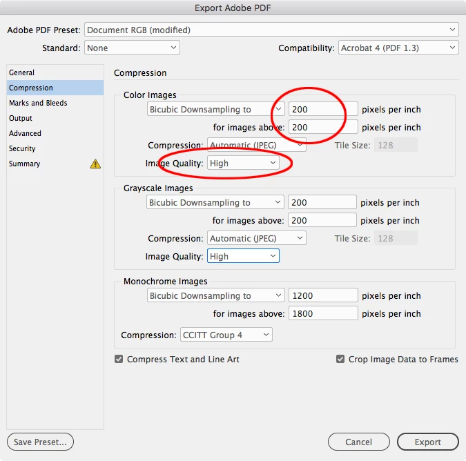 While I'm here, I also wanted to ask for tips for exporting PDFs with about 10-15 images and keep the quality as high as possible but the PDF size under 2MB