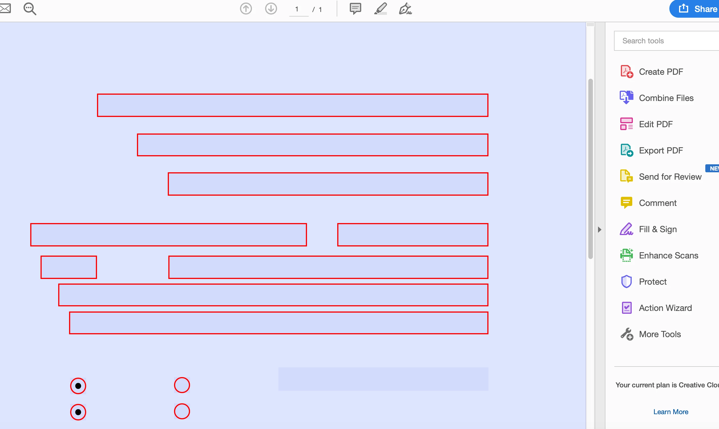 The document opens in Acrobat but I see only the buttons, textboxes and checkboxes but no images or questions...