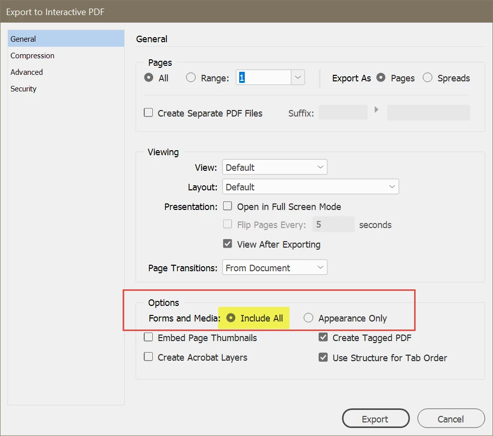 Exporting Interactive PDF not working.