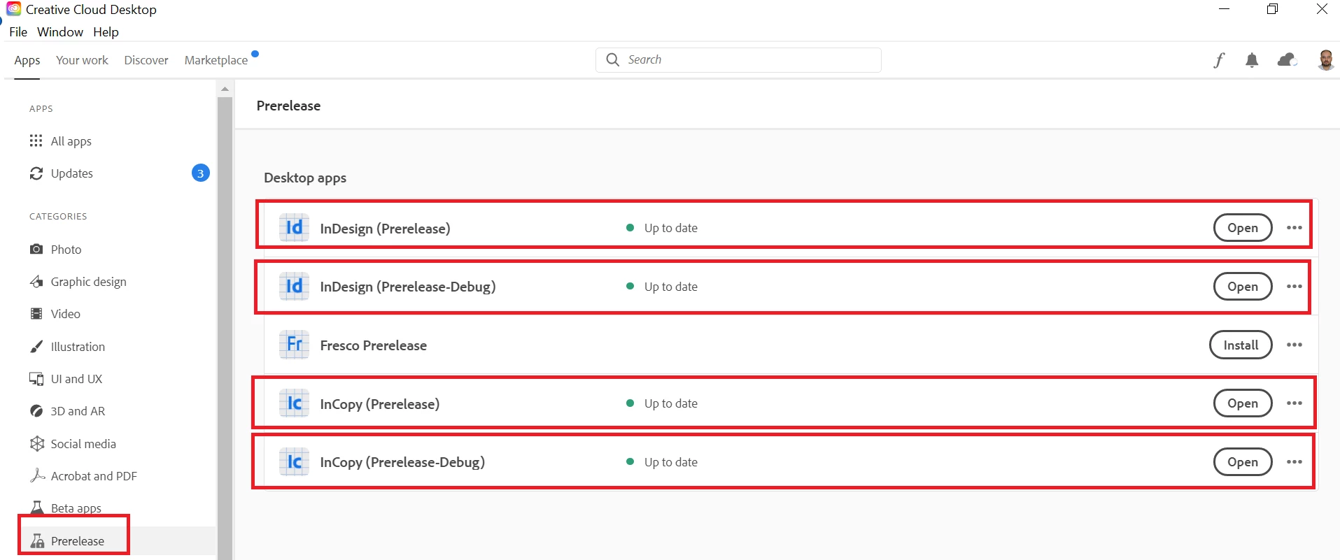 Download/Update the latest InDesign PreRelease build in Creative Cloud under the “Prerelease” category(Refer to “Prerelease_CreativeCloud.png” for reference)