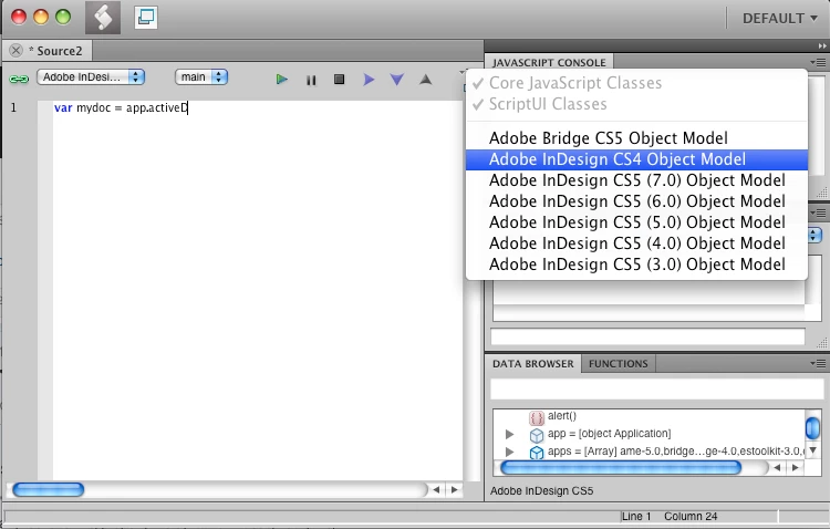 In the dropdown list I have selected "Adobe Indesign CS4" and "main".