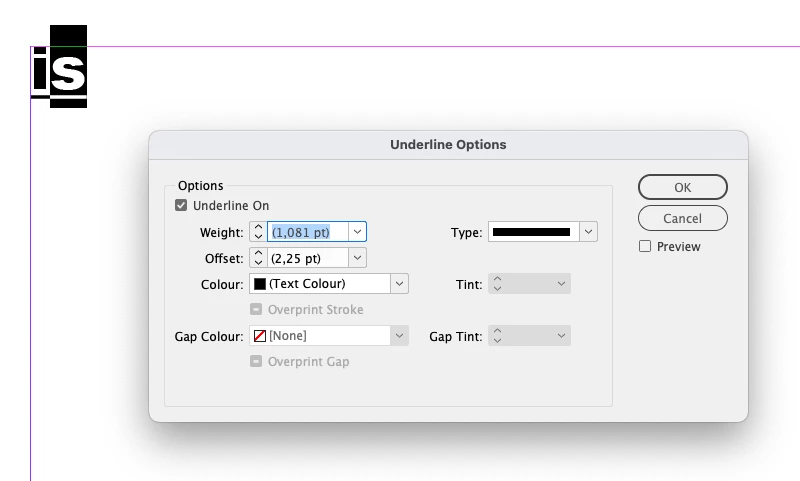 Extract "underlineWeight" value …