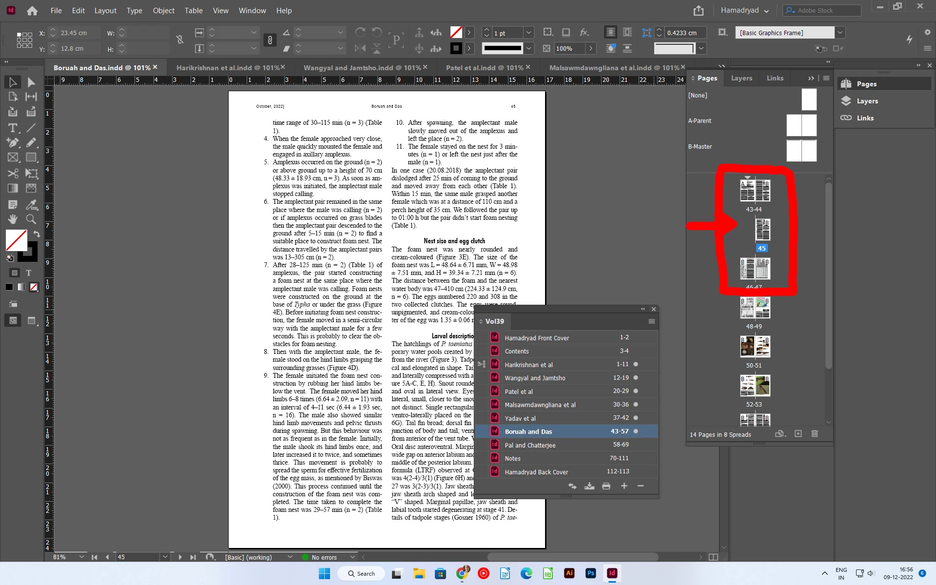 Also you should check the spread shuffling options applied to pages 43-45 to be sure shuffling is allowed.