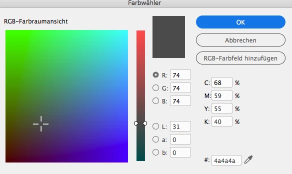 ...und hier bei meinem grauen Feld (tatsächlich #4a4a4a) kann ich ein RGB-Farbfeld auswählen?