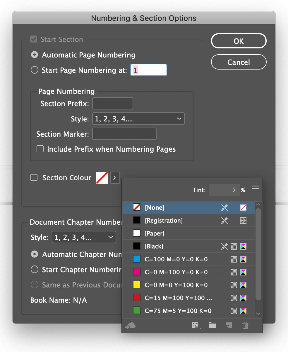 In the master options dialog users would be able to set a color for that master. Same for the Numbering & Sections dialog > See Image01 and Image02