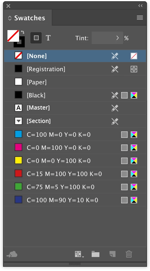 The Swatch Panel would feature two new default swatches named [Master] and [Section] > See Image03