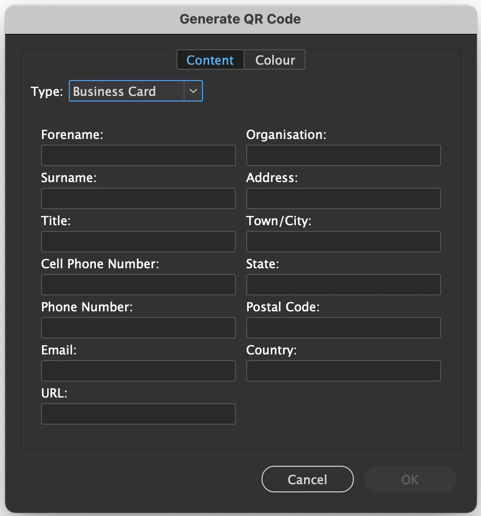 While using the "Business Card" option in your QR code generation interface, we noticed an area where improvements could significantly enhance the user experience.