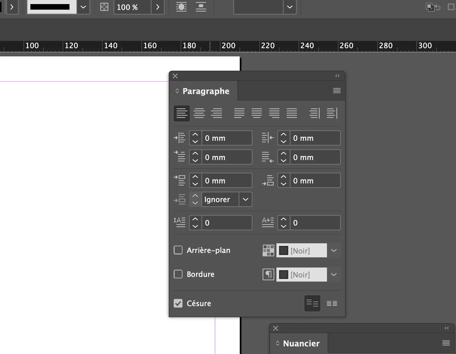 Fenetre Paragraphe vide Adobe Indesign 2025 (20.5)
