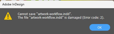 There is a bug in InDesign 21.2 (and Windows 11 Enterprise): our latest files were corrupted and unavailable when we opened them this morning. (Error message and warning sign.).