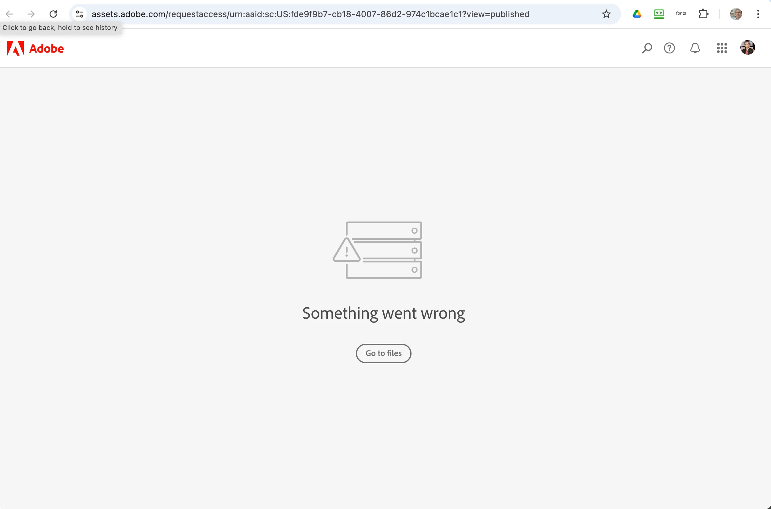 I shared a number of files for review from InDesign. The reviewer reviewd them and informed me. I am able to access two files and the comments successfully but while trying to access the link of one files I am getting error "Something Went Wrong, Go to files" error.