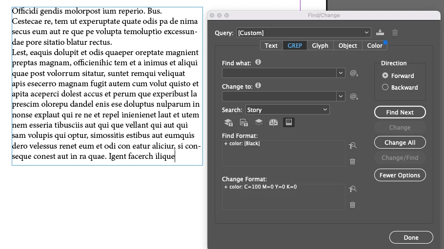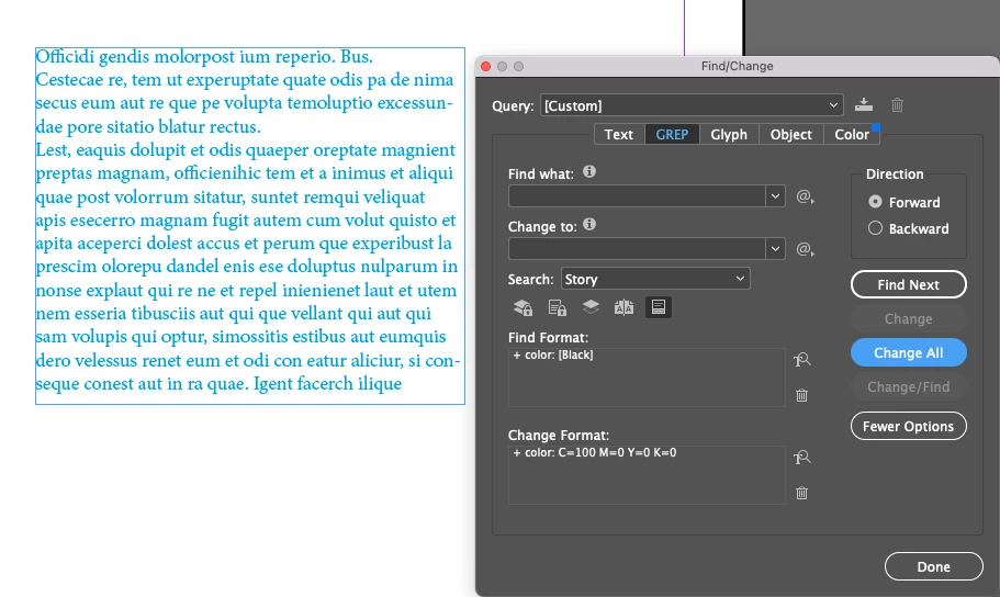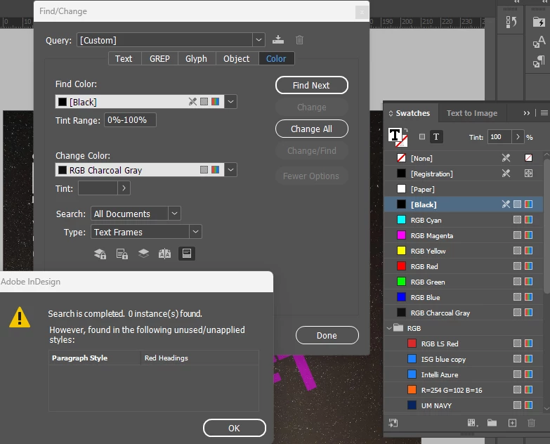Find/Change Color doesn't find BLACK on text