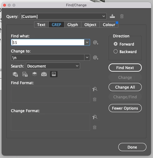 I'm a newbie to using Data Merge I now need to replace any instance of '$$' with a line break.