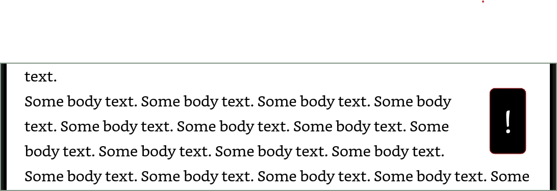 But if the frame holds text... it will only export as expected with float:right. If you apply float: left... it turns into a drop cap, more or less. I have tried every variation, !important, approach etc. and if you left-float a text frame, it turns into about 3em text with no frame, border, background or other defined styling. Here is the same exact doc, export, CSS code etc. with no change except a float flip from right to left: