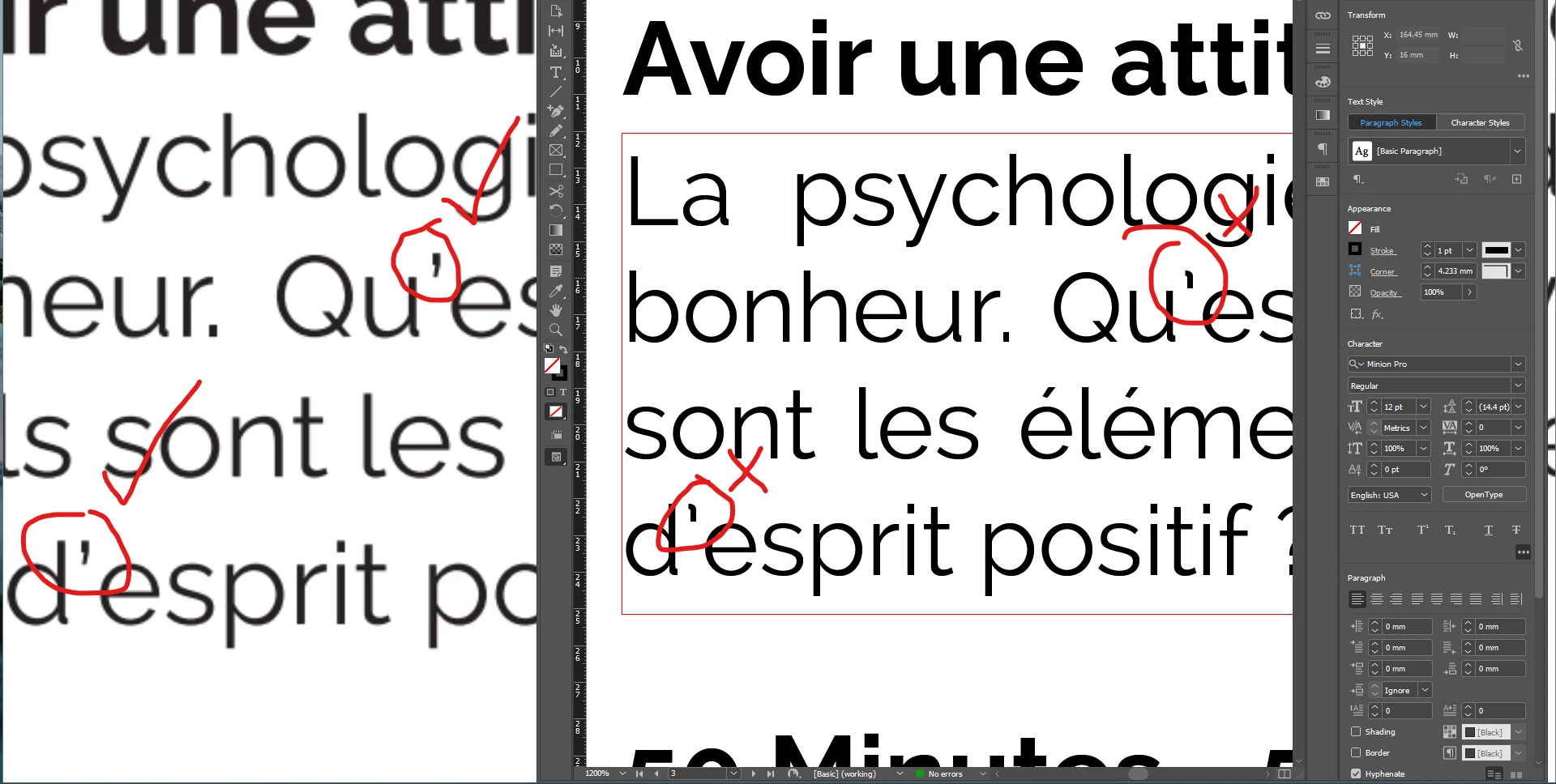 The screenshot above is the PDF export (left side) and the inDesign file (right side).