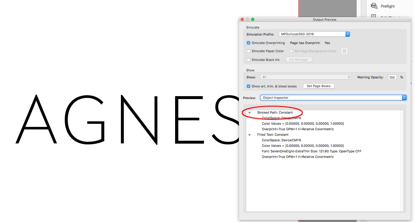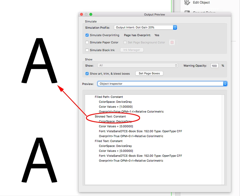 Hi Luke, I think any stroke amount greater than 0 applied to the text will show as Stroked Text in Acrobat. Here the top A has a .1pt stroke applied in InDesign, and the bottom version has the stroke set to 0: