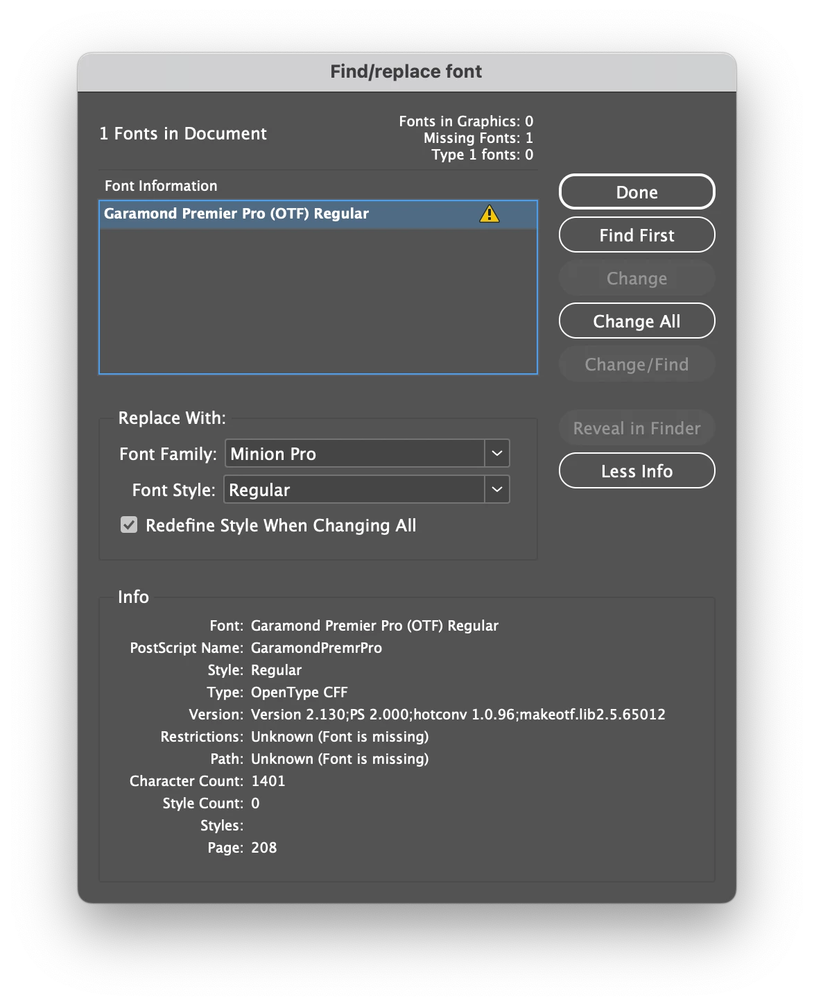Sometimes Adobe fonts do not activate and show as missing, even though they are loaded in CC. I have to replace every time this occurs.