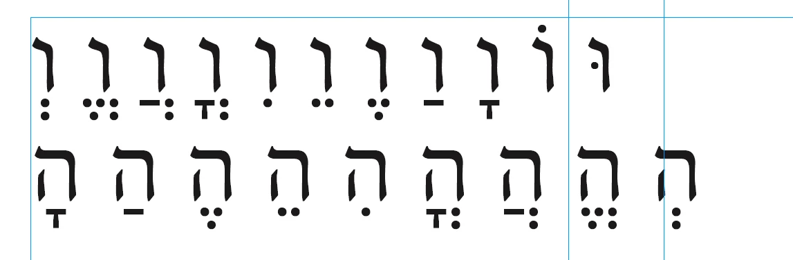 When this font is used as part of a Composite font in InDesign, the result is quite different. It seems like the ccmp feature is honored but the mark feature is not. (The first [last for non-Israelis] character on the first line is controlled with a ccmp feature to combine two characters.)