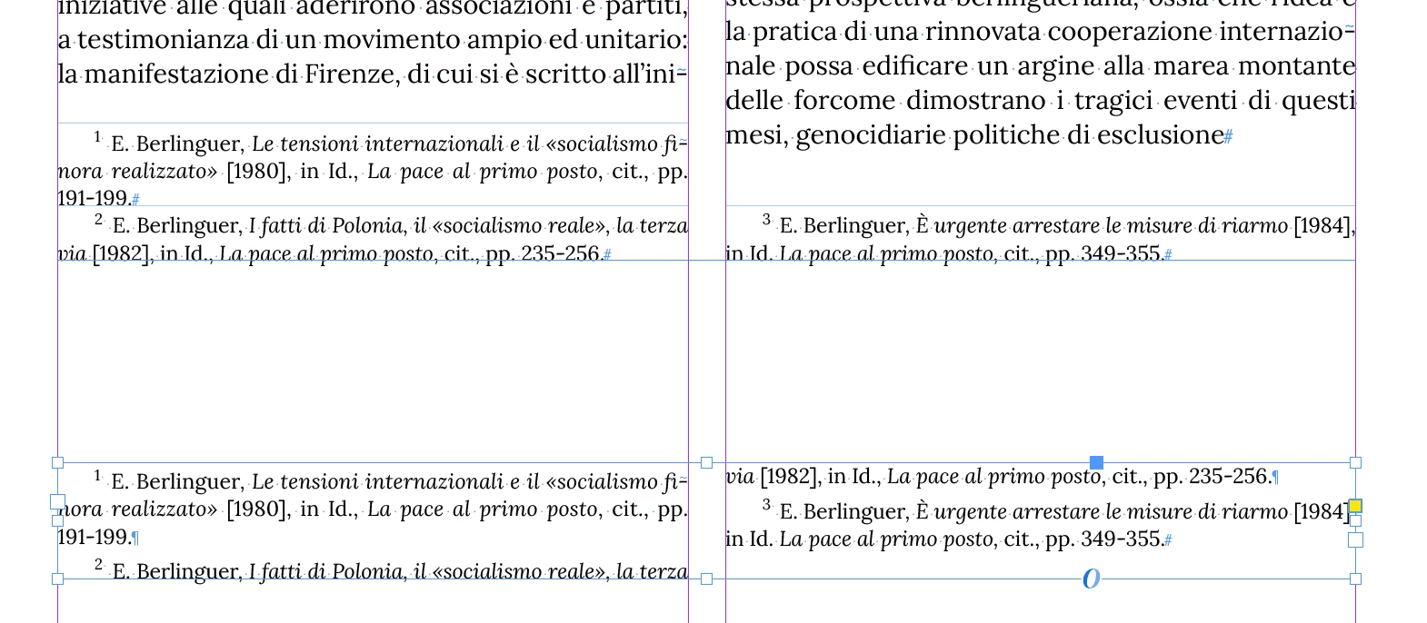 Example: if I have 3 notes of 3 lines each, they will have to be divided into 5 lines in the left column and 4 in the right column. They must align with the first row and there must be 2 columns left.