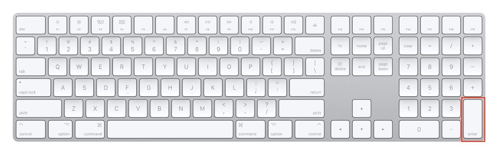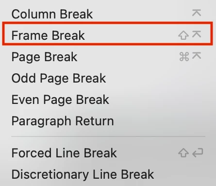 It is character called a Projective and is located at Unicode U+2305, and it represents (Numeric Keypad) Enter Key in the iconography of macOS. In the macOS version of Adobe InDesign, it is pressed to make a column break. On my MacBook Pro, which does not have a full-size keyboard with Numeric keypad on the right side, the work-around is to press Fn+Return. If you want to break to the next frame, add also the Shift key.