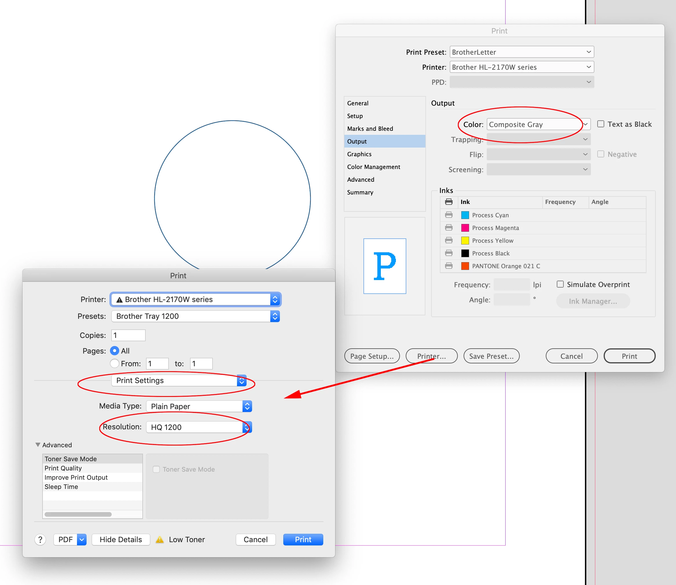I'm creating little calendar templates for myself to use at home and I'm printing them all through my Brother Color Laser printer (MFC-L8900DCW to be exact) using Adobe Acrobat. I just cannot get the templates to come out looking like they do on the screen. See attached images. The solid black and grey lines and text come out looking very fuzzy/dotted? Not clean solid lines like they should be. It's not a printer issue, because I did a test print page from the printer itself and everything looked fine, so it must be something in the InDesign settings. My printer is set to the highest quality setting as well and is printing in colour and at least 300 DPI (I've tried 600 DPI as well). Print As Image is turned off. I've also tried regular copy paper and 32 lb paper and I get the same result.
