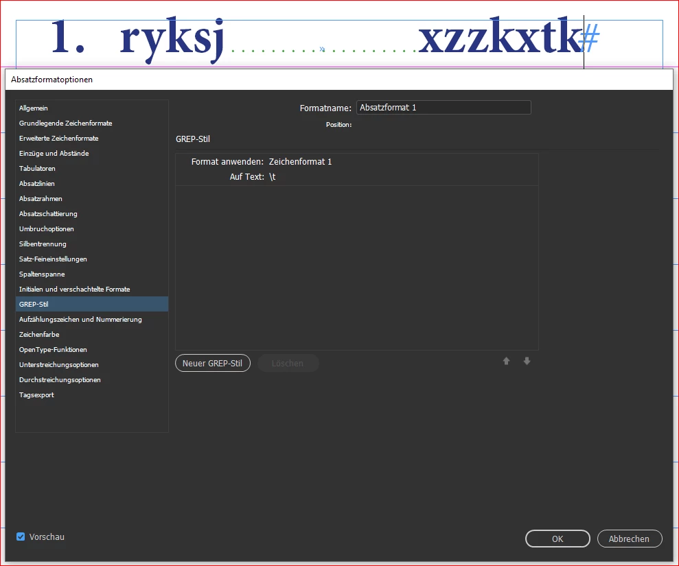 Nachher: mit Zeichenformat per Grep-Stil im Absatzformat (Vorschau an)