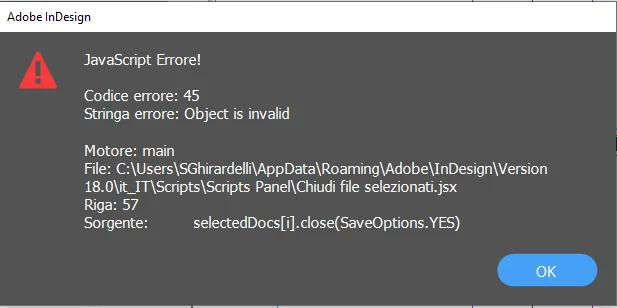 alert("Si è verificato un errore durante la chiusura dei documenti: " + error);