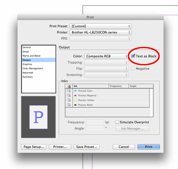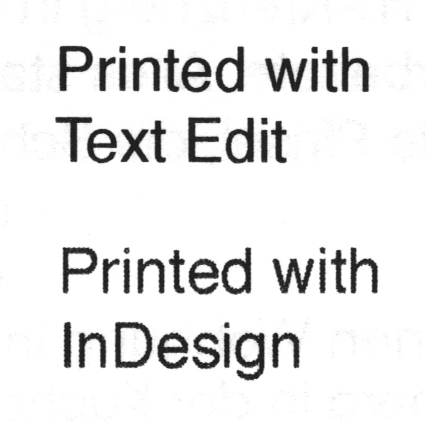 I've been struggling with a problem for some while now. I bought a new b/w laser printer (Brother DCP-L2530DW) and every time I print from an Adobe application (ID, AI, Acrobat....) all the type gets printed very fuzzy (see attached image).
