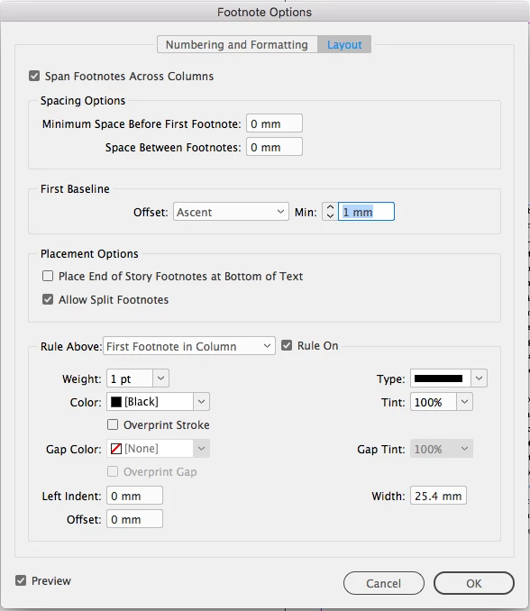 "Space Between Footnotes" in "Document Footnotes Option" is already set to 0.