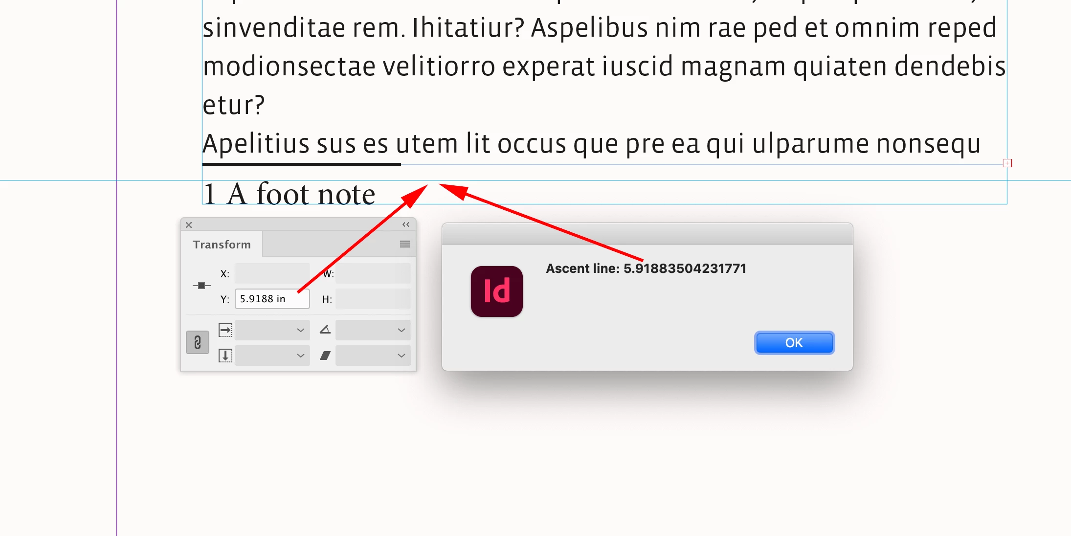 Is it possible to get the Y position of the **beginning of the footnote area** of a selected or given text frame?