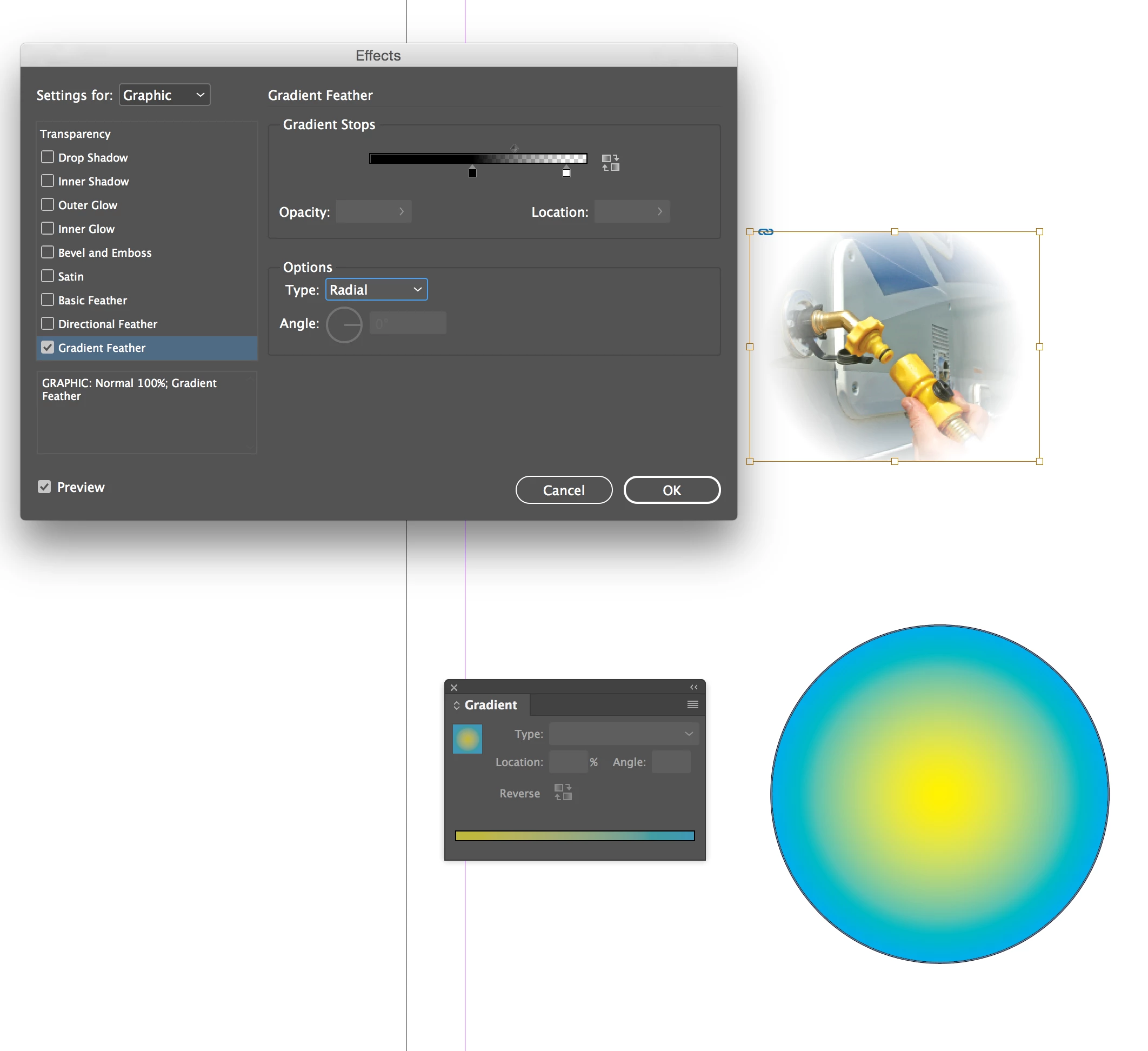 I am trying to create a radial gradient feather in InDesign in a shape and it is not working properly on my mac.