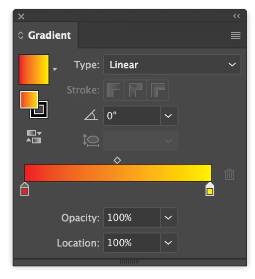 When youOK the dialog a new swatch is added to the Swatch panel. You can apply it by drawing or selecting an object in your file and making the fill box active . It should look like this