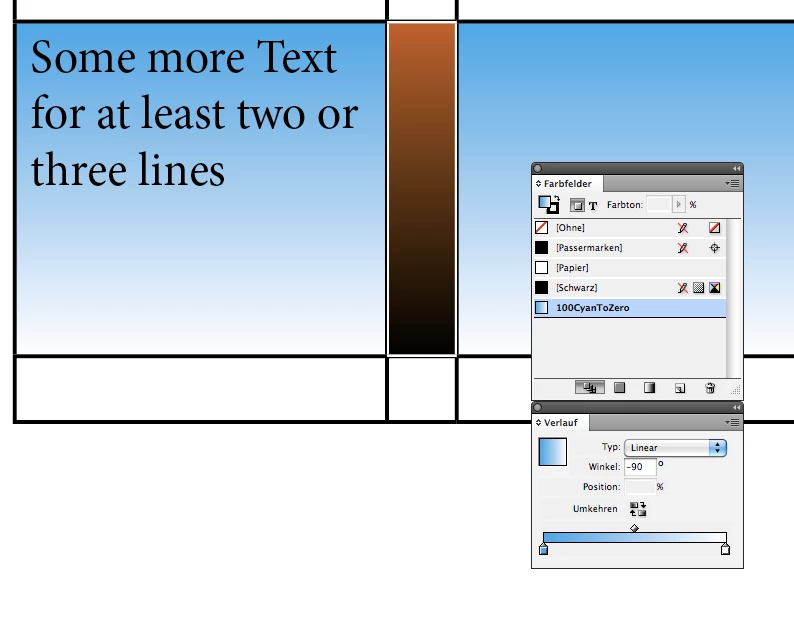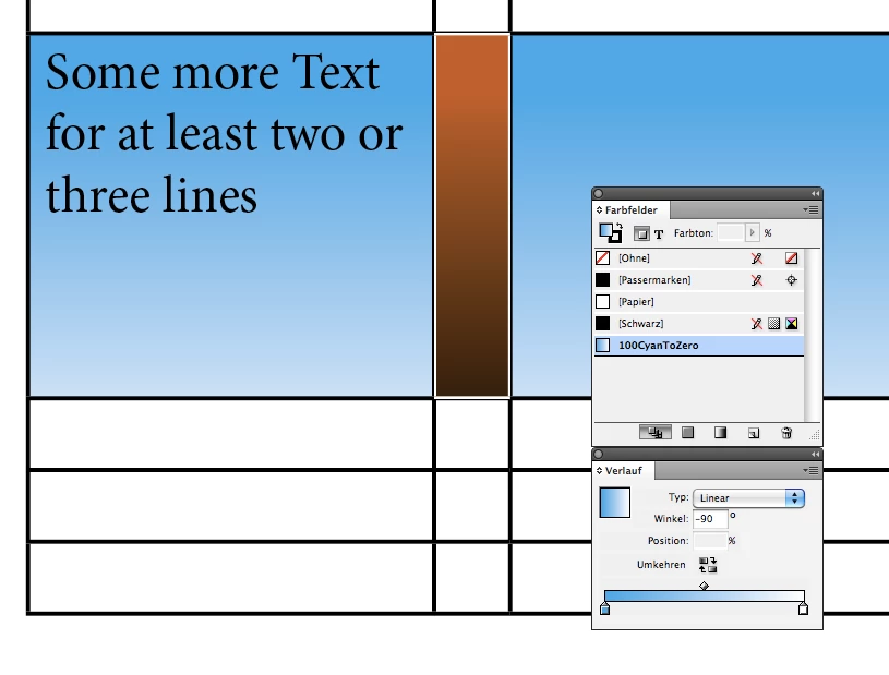 - There is no seeming way to get a horizontal gradient, or a vertical gradient with the colors reversed. InDesign decides the orientation and polarity (in this instance, dark (left) to light (right) ) of your gradient