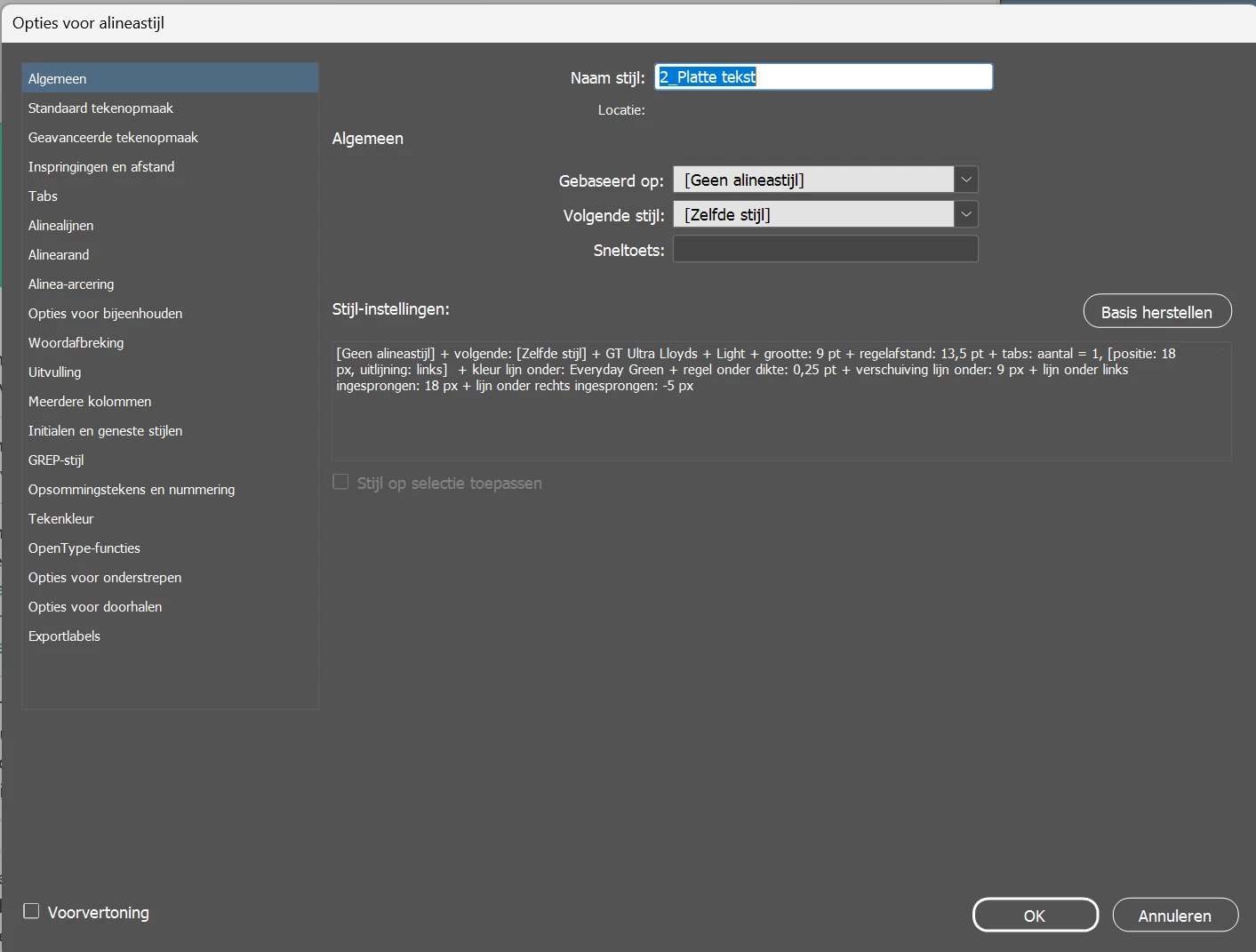 As you can see in the screen capture, they have made a paragraph style which has line under the paragraph, translation from Dutch screen capture to English: " + kleur lijn onder: Everyday Green + regel onder dikte: 0,25pt + verschuiving lijn onder: 9 px + lijn onder ingesprongen: 18 px + lijn onder rechts ingesprongen: -5 px" translates to: "+ color line below: Everyday Green + line below thickness: 0,25pt + line below offset: 9 px + line below indent: 18 px + line below right indent: -5 px".