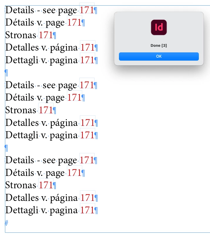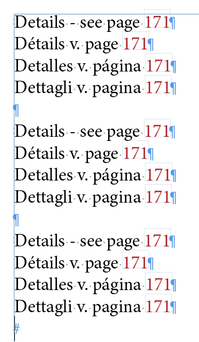The number of page is a cross-reference link which varies depending of product which it connects. My goal is to add another (polish) translation between french and spanish one. So I thought this sentence would work: