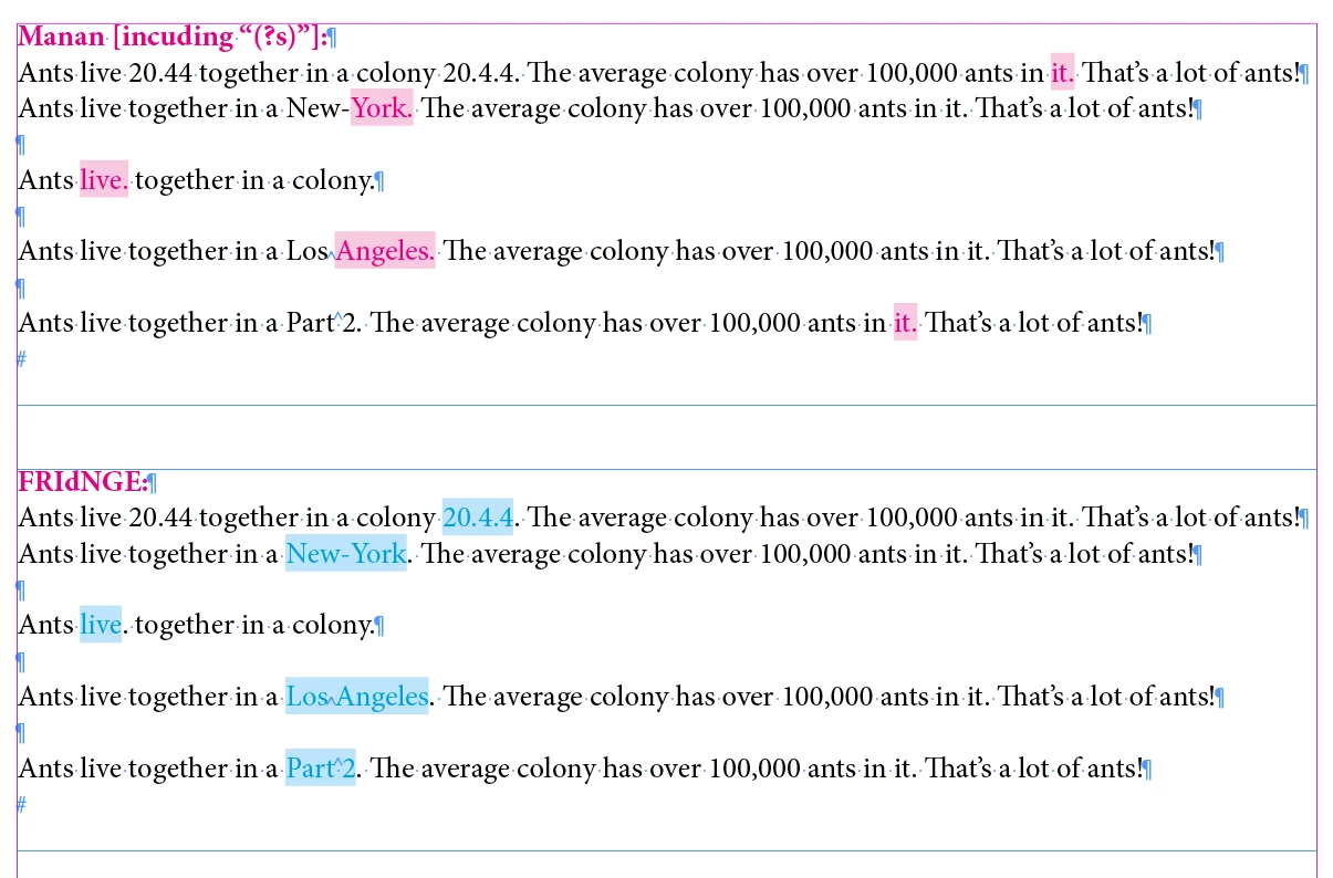 I can find the first word in the first sentence, but not the last: