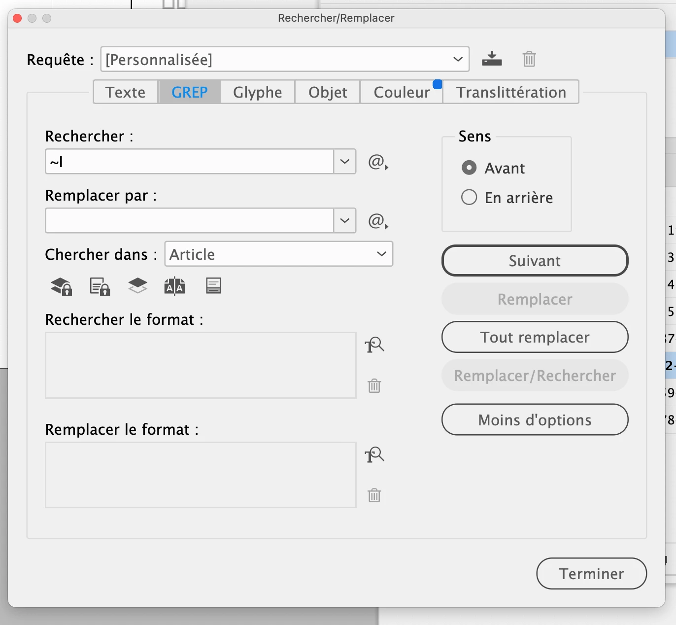 En copie collant dans Grep, j'obtiens des séries du style : \t: ~l~l\t