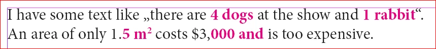 I have some text like "there are 4 dogs at the show and 1 rabbit".
