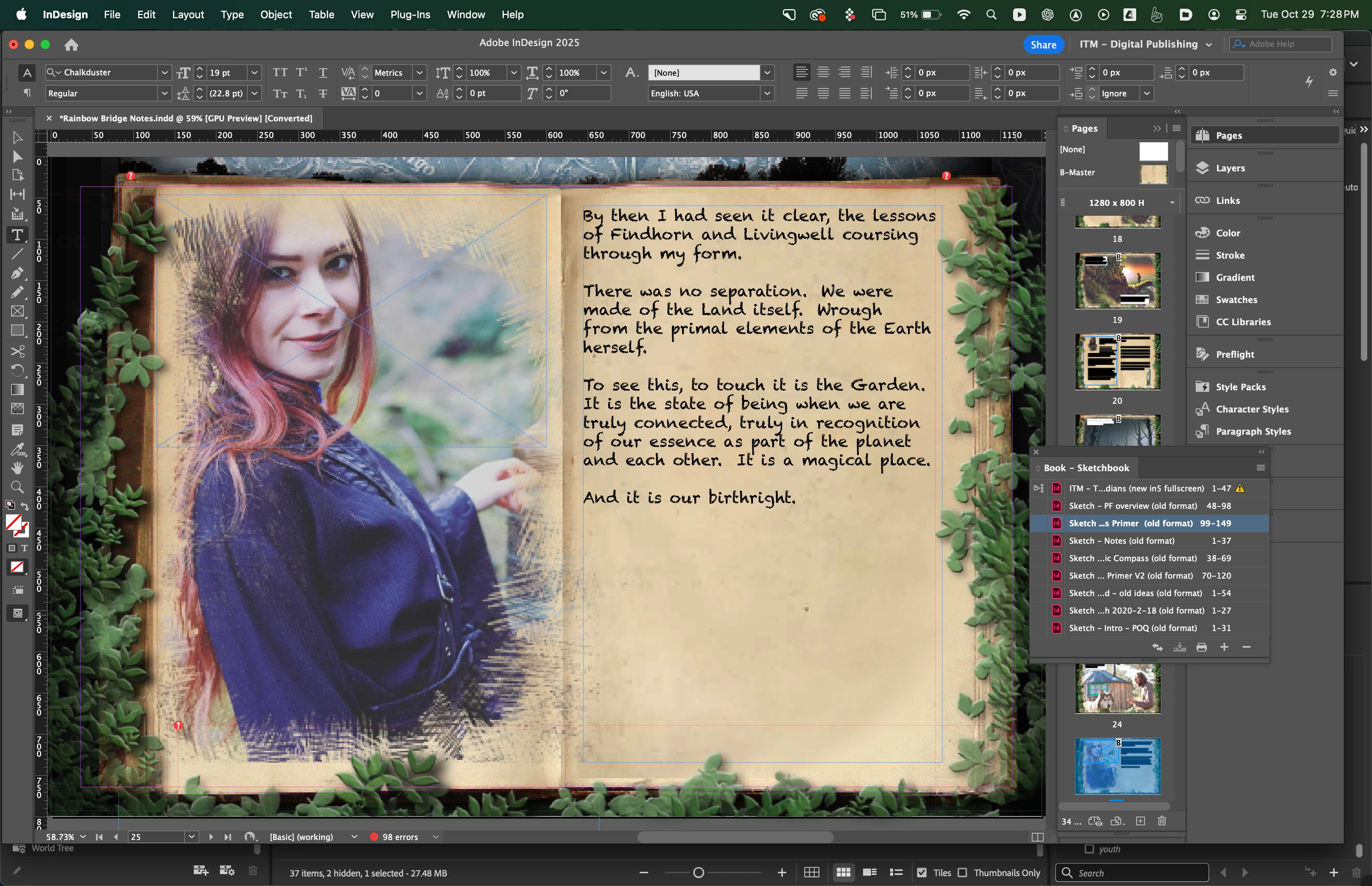 I'm just learning the in's and out's of inDesign and have for many years just sort of been approaching it in a kind of painterly way, but am starting to ground out into the formats.